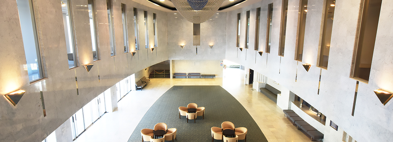 半九ホール及び小ホールの特定天井の改修工事等を予定しています。